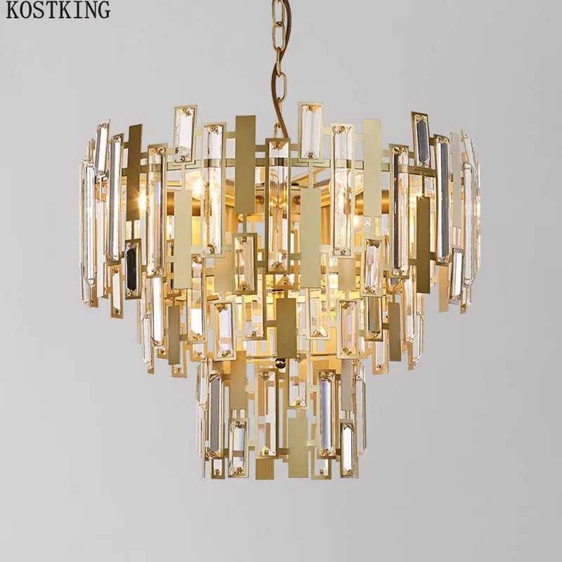 Product Name: Ronde Ontwerp Champagne Kroonluchter Woonkamer Kristallen Lamp AC110V 220V Metalen Hanglamp Eetkamer Verlichtingsarmaturen