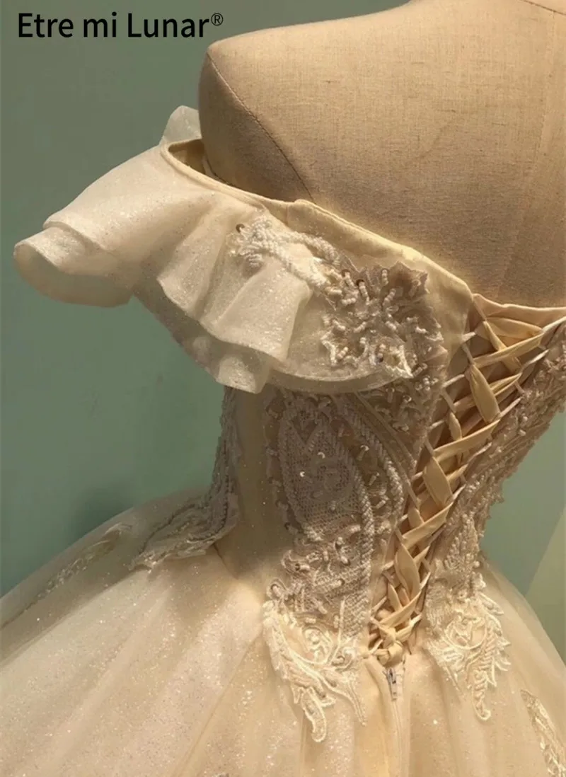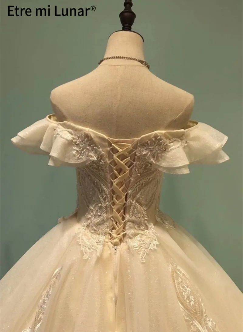 Product Name: 2020 Champagne Sweetheart Dubai Kant Trouwjurk Off Shoulder Kant Applicaties Baljurk WD30661