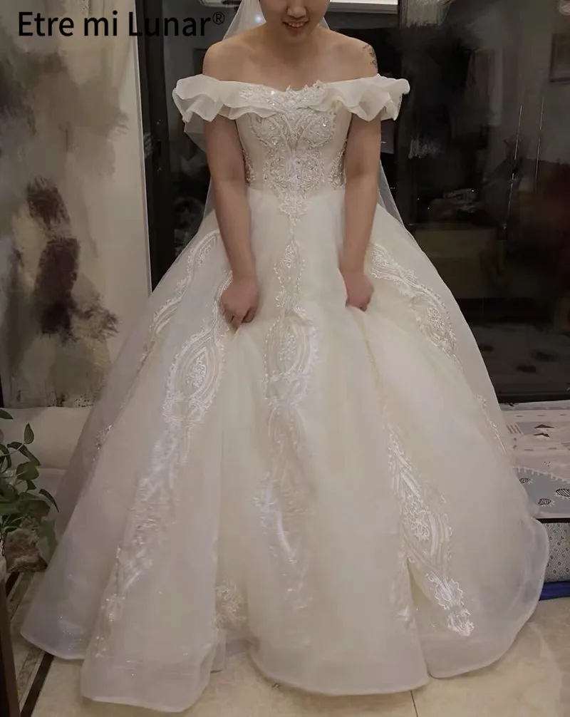 Special Offer 2020 Champagne Sweetheart Dubai Kant Trouwjurk Off Shoulder Kant Applicaties Baljurk WD30661 Discount 50% Today!