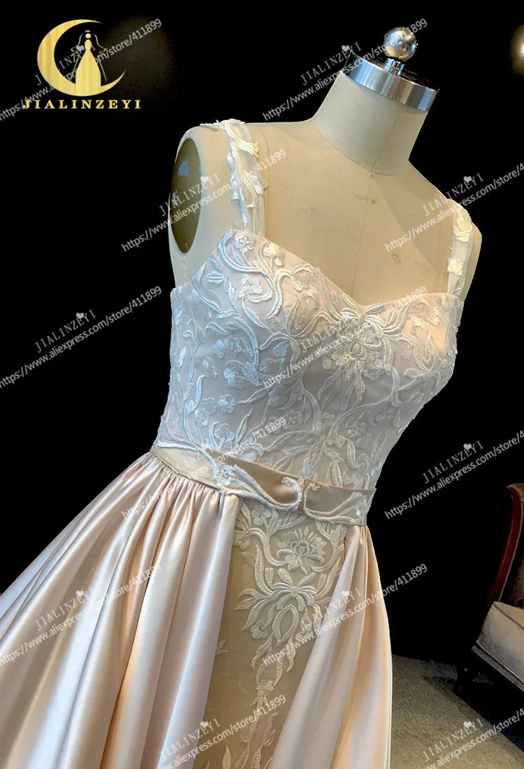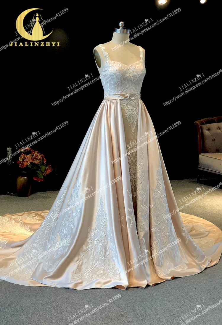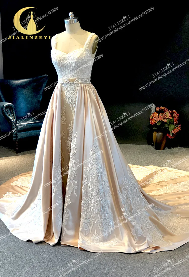 Special Offer Jialinzeyi Real Picture Twee Bandjes Champagne Kant Met Trein Trouwjurken Wedding Gown Dress 2020 Discount 0% Today!