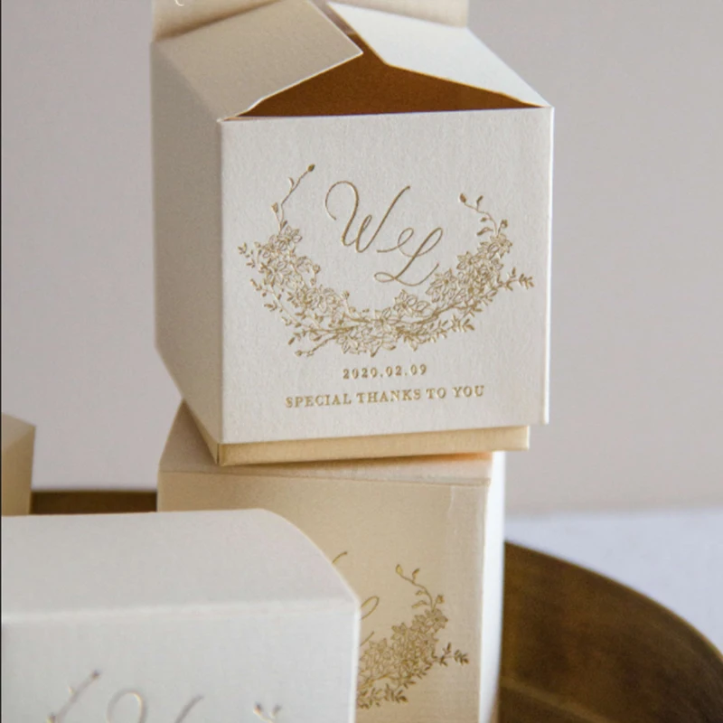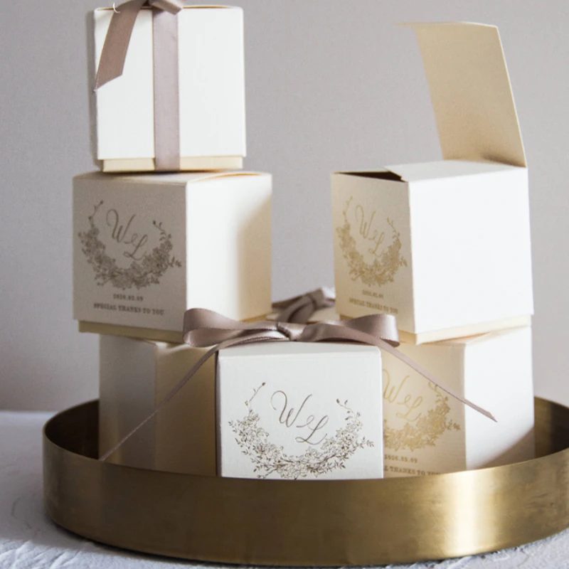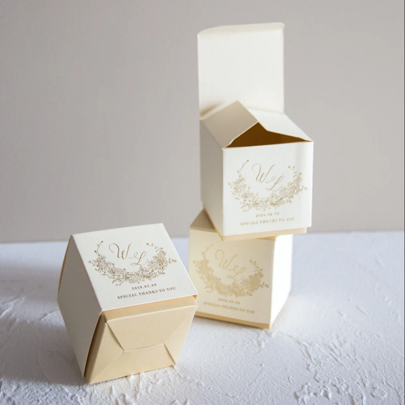 Special Offer Gepersonaliseerde Naam Datum Trouwbedankjes 300 Stuks Lot Bronzing Proces Custom Logo Champagne Abrikoos Red Candy Box Cadeaus Voor Gasten Discount 0% Today!