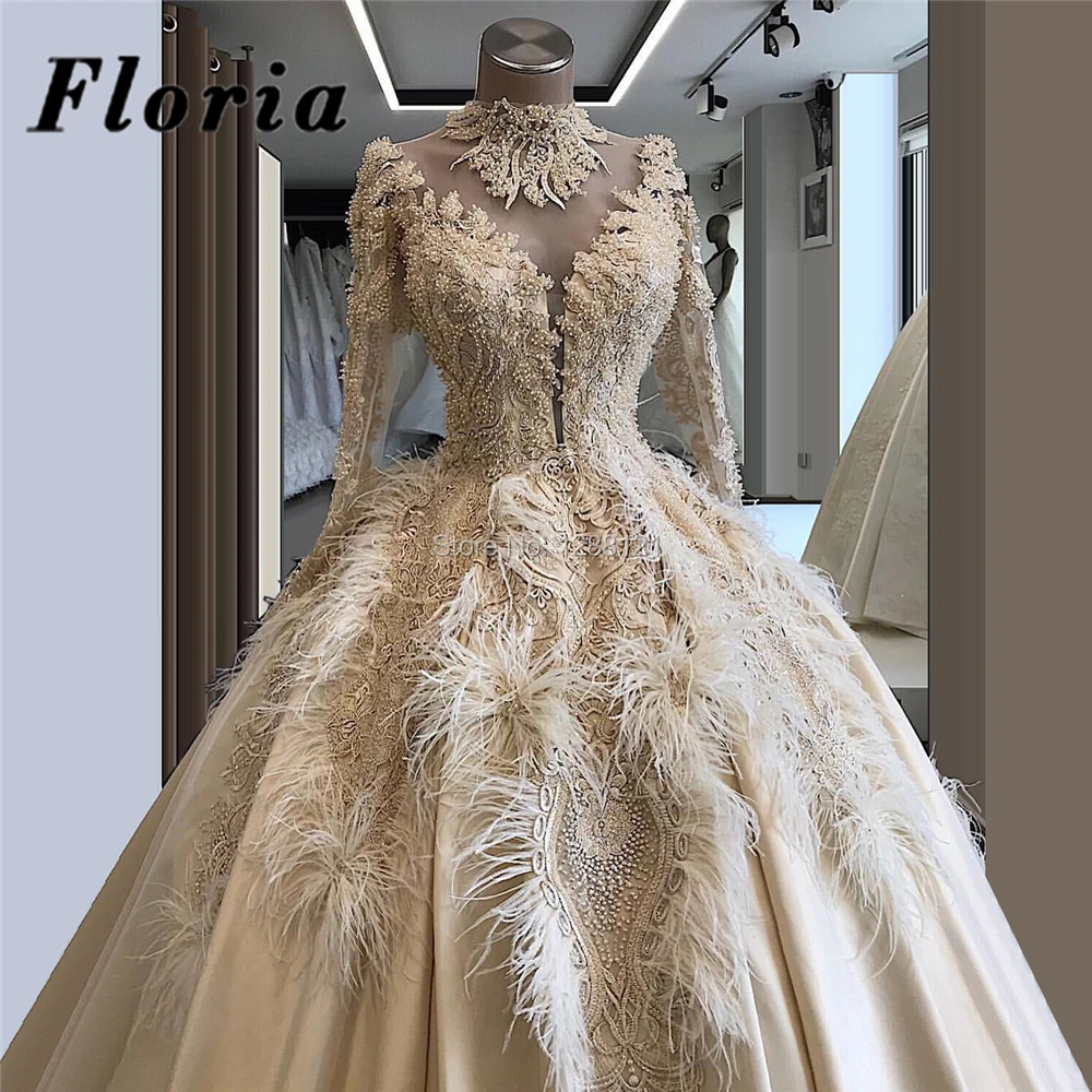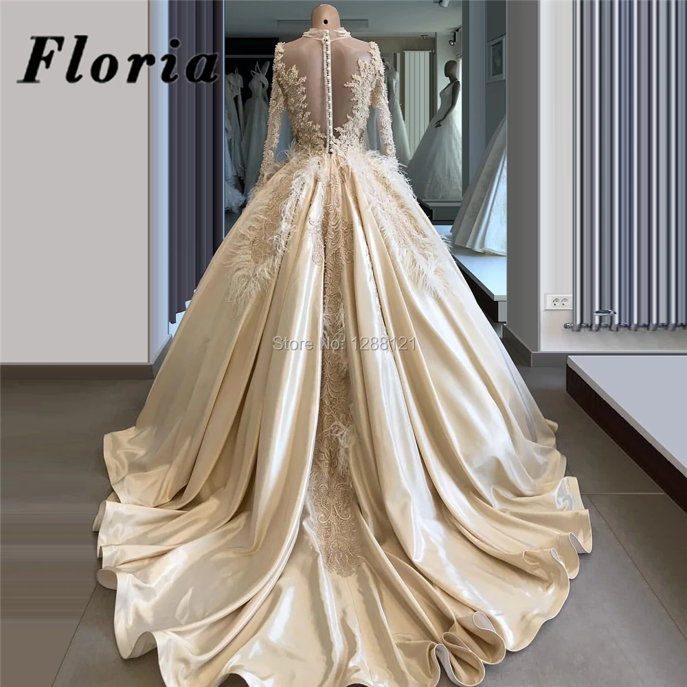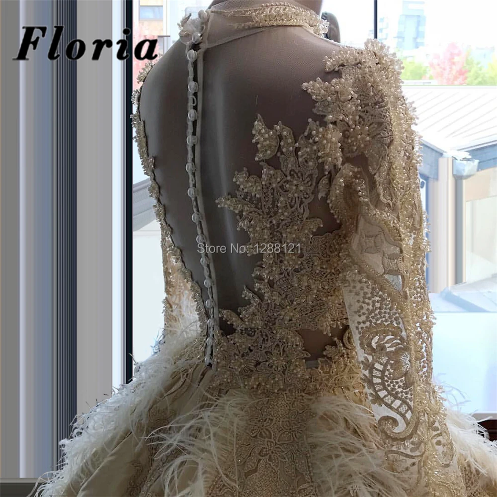 Special Offer Champagne Kralen Dubai Bruidsjurken Veren Illusion Terug Bruidsjurken 2020 Turkse Parels Lace Bruidsjurken Robe De Mariee Discount 52% Today!
