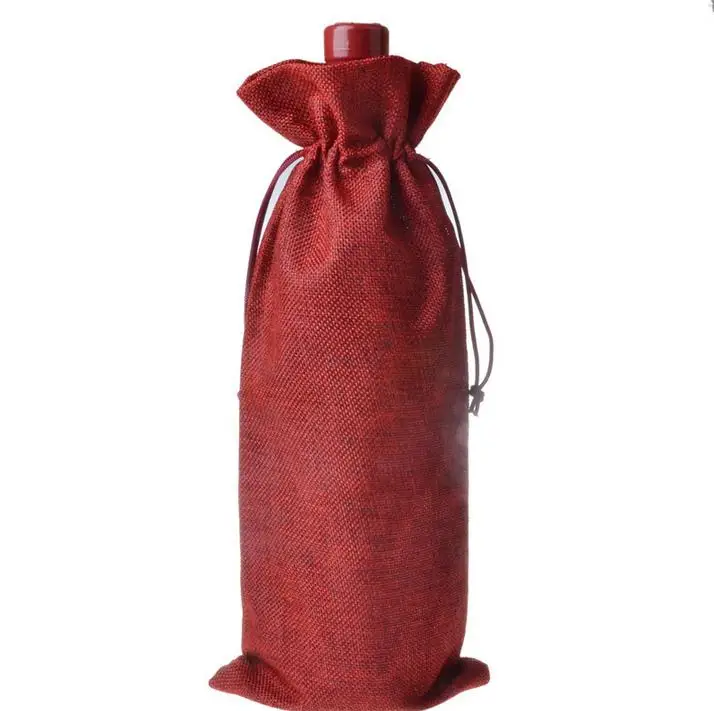 Product Name: Jute Wijn Zakken Champagne Wijnfles Covers Gift Pouch Jute Verpakking Bag Wedding Party Decoratie